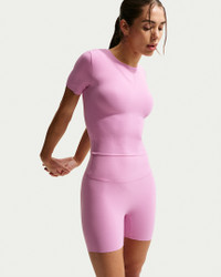 Bend and stretch in total confidence in this snug crop top. Still lightweight, our updated InfinaSoft fabric is now ultrasoft with stretch designed to recover its shape wear after wear. Benefits - Nike Dri-FIT technology moves sweat away from your skin for quicker evaporation, helping you stay dry and comfortable. - Subtly cropped hem is designed to fall just below your natural waist. Product Details - Raw cut hem - 69% nylon/31% spandex - Machine wash - Imported - Shown: Light Magenta/White - Style: IB8964-503 SIZE & FIT Model is wearing size S and is 5′6″168cm Tight fit: snug and form-fitting
