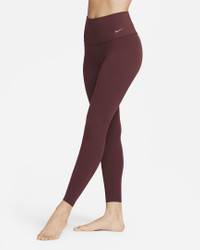 Whether it's yoga or a bike ride or a walk, you can move freely in our unbelievably soft Nike Zenvy leggings. Their InfinaSoft fabric is lightweight—but still squat-proof!—with softness that you can feel with every bend, stretch and shift. Fewer pockets give you a streamlined look, but the drop-in pocket at the center back is still big enough to hold your phone. Plus, they're durable enough for you to move, wash and wear again and again. Benefits - Designed to help reduce rolling, pinching and sliding, extra-wide waistband helps hold you up and smooths waist. - Nike Dri-FIT technology moves sweat away from your skin for quicker evaporation, helping you stay dry and comfortable. Product Details - 7/8 length - High-rise waistband - Body: 63% nylon/37% spandex. Gusset Lining: 84% nylon/16% spandex. - Machine wash - Imported - Not intended for use as Personal Protective Equipment (PPE) - Shown: Burgundy Crush/Black - Style: DQ6015-652 SIZE & FIT Model is wearing size S and is 5′9″175cm Tight fit: snug and form-fitting Gentle support: feels ke a soft hug with plenty of freedom 78 length: hits at ankle High-Waisted: sits at or above your natural waist for more coverage
