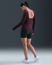 Whether it's yoga or a bike ride or a walk, you can move freely in our unbelievably soft Nike Zenvy biker shorts. Their InfinaSoft fabric is lightweight—but still squat-proof!—with softness that you can feel with every bend, stretch and shift. Fewer pockets give you a streamlined look, but the drop-in pocket at the center back is still big enough to hold your phone. Plus, they're durable enough for you to move, wash and wear again and again. Benefits - Designed to help reduce rolling, pinching and sliding, extra-wide waistband helps hold you up and smooths waist. - Nike Dri-FIT technology moves sweat away from your skin for quicker evaporation, helping you stay dry and comfortable. Product Details - Body: 63% nylon/37% spandex. Gusset lining: 84% nylon/16% spandex. - Machine Wash - Imported - Not intended for use as Personal Protective Equipment (PPE) - Shown: Seaweed/Black - Style: FN3156-390 SIZE & FIT Model is wearing size S and is 5′6″168cm Tight fit: snug and form-fitting Gentle support: feels ke a soft hug with plenty of freedom High-Waisted: sits at or above your natural waist for more coverage