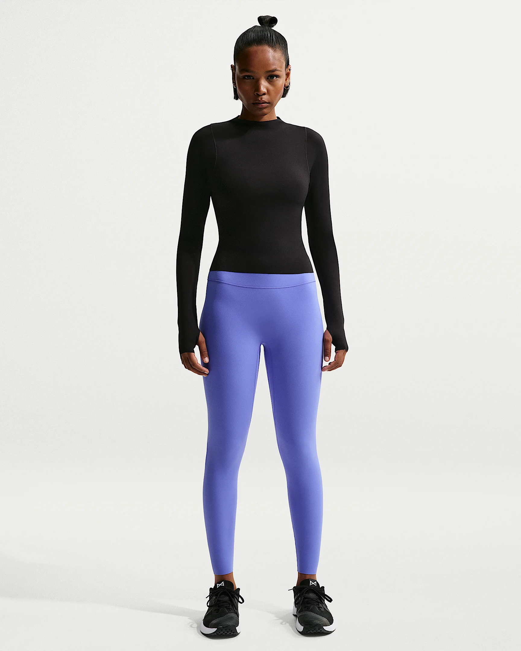 Bend and stretch in total confidence. Still lightweight, our updated InfinaSoft fabric is now ultrasoft with stretch designed to recover its shape wear after wear. Benefits - Nike Dri-FIT technology moves sweat away from your skin for quicker evaporation, helping you stay dry and comfortable. - We raised the waistband slightly for a true high-waisted fit. - No front seam helps keep the fabric from riding up, giving you a smooth fit and seamless look. - Hidden pocket at the back of the waistband fits most phones. Product Details - Raw hem - No front seam - Body: 69% nylon/31% spandex. Panels lining: 72% nylon/28% spandex. - Machine wash - Imported - Shown: Sapphire/White - Style: II5233-570 SIZE & FIT Tight fit: snug and form-fitting Gentle support: feels ke a soft hug with plenty of freedom 78 length: hits at ankle High-Waisted: sits at or above your natural waist for more coverage