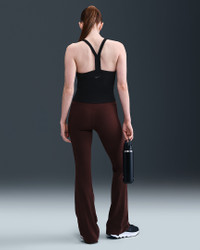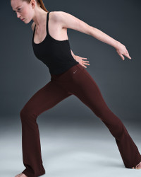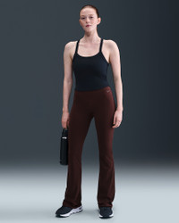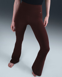 Holding your poses or taking a walk in the park, you can move freely in our unbelievably soft Nike Zenvy flared leggings. Their InfinaSoft fabric is lightweight—but still squat-proof!—with softness that you can feel with every bend, stretch and shift. Fewer pockets give you a streamlined look, but the drop-in pocket at the center back is still big enough to hold your phone. Benefits - Nike Dri-FIT technology moves sweat away from your skin for quicker evaporation, helping you stay dry and comfortable. - Hidden drop-in pocket at back waistband helps keep your essentials close. Product Details - Body: 63% nylon/37% spandex. Gusset lining: 84% nylon/16% spandex. - High-rise waistband - Full-length - Machine wash - Imported - Not intended for use as Personal Protective Equipment (PPE) - Shown: Burgundy Crush/Black - Style: FV7921-652 SIZE & FIT Model is wearing size S and is 5′7″170cm Tight fit: snug and form-fitting Gentle support: feels ke a soft hug with plenty of freedom Fl length: hits below ankle High-Waisted: sits at or above your natural waist for more coverage