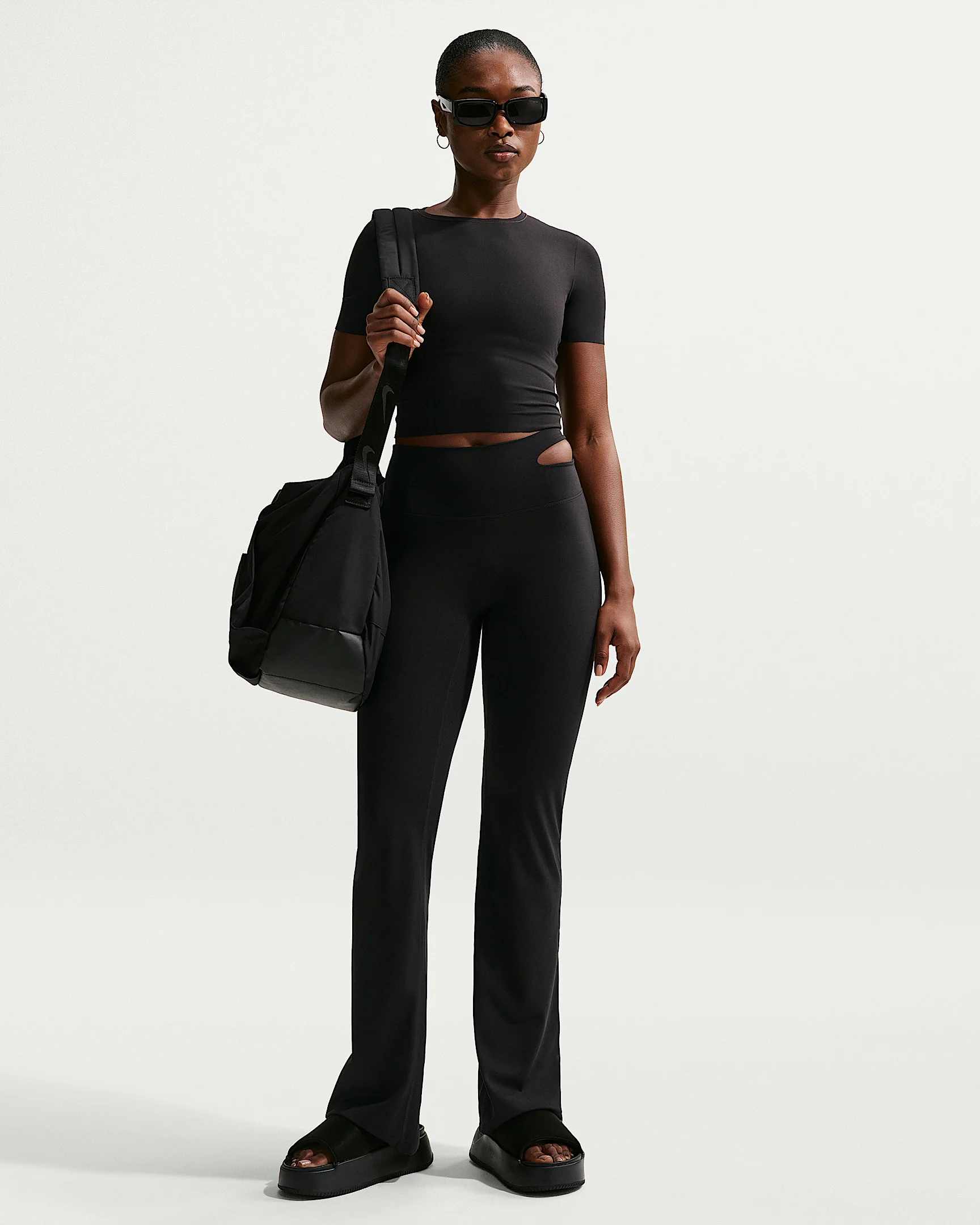 Bend and stretch in total confidence. Still lightweight, our updated InfinaSoft fabric is now ultrasoft with stretch designed to recover its shape wear after wear. Benefits - Nike Dri-FIT technology moves sweat away from your skin for quicker evaporation, helping you stay dry and comfortable. - We raised the waistband slightly for a true high-waisted fit. - No front seam helps keep the fabric from riding up, giving you a smooth fit and seamless look. - Hidden pocket at the back of the waistband fits most phones. Product Details - Cutout on waistband - No front seam - Swoosh logo at center back waistband - Body: 69% nylon/31% spandex. Panels lining: 72% nylon/28% spandex. - Machine wash - Imported - Shown: Black - Style: IB9115-010 SIZE & FIT Model is wearing size S and is 5′8″173cm Tight fit: snug and form-fitting Fl length: hits below ankle
