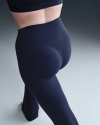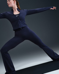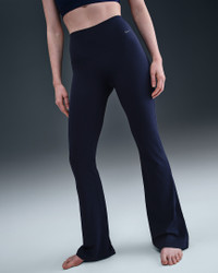 Holding your poses or taking a walk in the park, you can move freely in our unbelievably soft Nike Zenvy flared leggings. Their InfinaSoft fabric is lightweight—but still squat-proof!—with softness that you can feel with every bend, stretch and shift. Fewer pockets give you a streamlined look, but the drop-in pocket at the center back is still big enough to hold your phone. Benefits - Nike Dri-FIT technology moves sweat away from your skin for quicker evaporation, helping you stay dry and comfortable. - Hidden drop-in pocket at back waistband helps keep your essentials close. Product Details - Body: 63% nylon/37% spandex. Gusset lining: 84% nylon/16% spandex. - High-rise waistband - Full-length - Machine wash - Imported - Not intended for use as Personal Protective Equipment (PPE) - Shown: Midnight Navy/Black - Style: FV7921-410 SIZE & FIT Model is wearing size S and is 5′7″170cm Tight fit: snug and form-fitting Fl length: hits below ankle