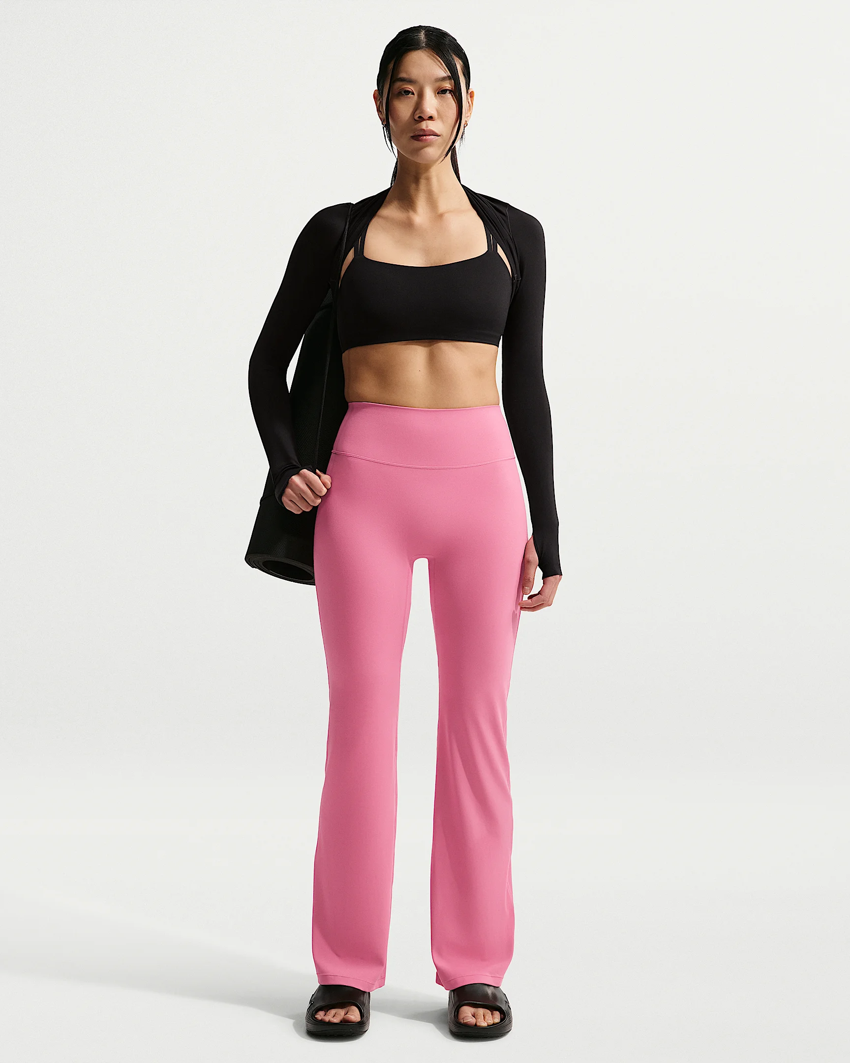 Bend and stretch in total confidence. Still lightweight, our updated InfinaSoft fabric is now ultrasoft with stretch designed to recover its shape wear after wear. Benefits - Nike Dri-FIT technology moves sweat away from your skin for quicker evaporation, helping you stay dry and comfortable. - We raised the waistband slightly for a true high-waisted fit. - No front seam helps keep the fabric from riding up, giving you a smooth fit and seamless look. - Hidden pocket at the back of the waistband fits most phones. Product Details - No front seam - Swoosh logo on back waistband - Body: 69% nylon/31% spandex. Panels lining: 72% nylon/28% spandex. - Machine Wash - Imported - Shown: Peony/White - Style: II5223-641 SIZE & FIT Model is wearing size S and is 5′10″178cm Tight fit: snug and form-fitting Fl length: hits below ankle
