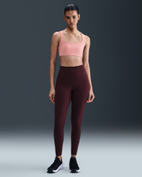Stretch freely—this bra's InfinaSoft fabric gives you a gentle hold with lightweight softness that wicks sweat. A breathable liner offers subtle coverage while the open back invites plenty of airflow. Benefits - Nike Dri-FIT technology moves sweat away from your skin for quicker evaporation, helping you stay dry and comfortable. - Light support gives you a gentle hold with plenty of freedom that's great for low-impact workouts or all-day comfort. Product Details - Swoosh logo at back - Body: 63% nylon/37% spandex. Lining: 88% polyester/12% spandex. - Machine Wash - Imported - Shown: Rust Pink/White - Style: HQ3956-685 SIZE & FIT Model is wearing size S Model height: 5′11″180cm Model bust: 30″76cm Tight fit: snug and form-fitting Light support: feels ke a soft hug with plenty of freedom