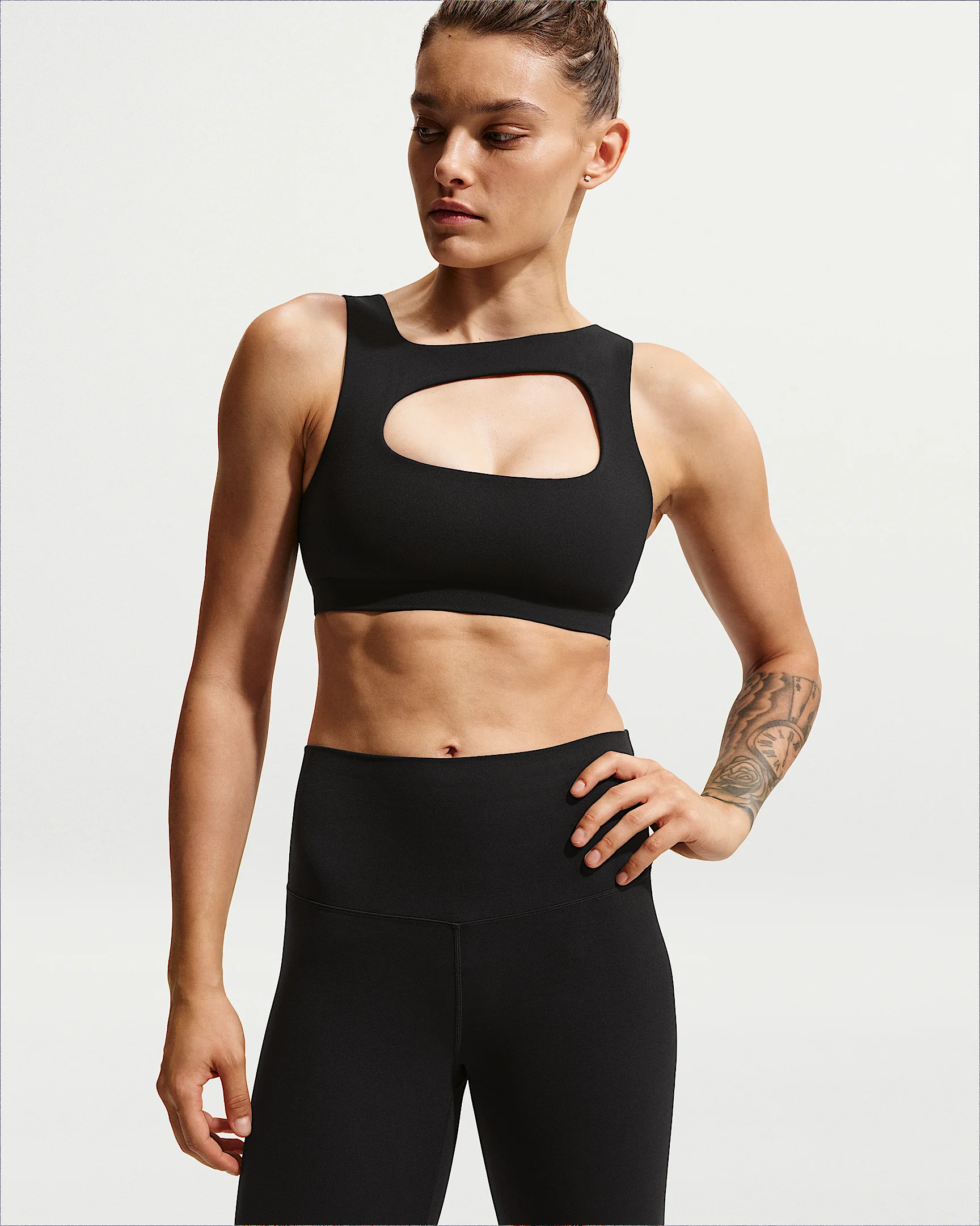 Bend and stretch in total confidence. Still lightweight, our updated InfinaSoft fabric is now ultrasoft with stretch designed to recover its shape wear after wear. Made with a breathable liner for subtle coverage, this light-support bra gives you a gentle hold ideal for low-impact workouts. Benefits - Nike Dri-FIT technology moves sweat away from your skin for quicker evaporation, helping you stay dry and comfortable. - Light support gives you a gentle hold with plenty of freedom. - Lightweight, breathable lining offers subtle coverage. - Keyhole design helps add ventilation. Product Details - Body: 69% nylon/31% spandex. Lining: 88% polyester/12% spandex - Machine Wash - Imported - Shown: Black/Cool Grey - Style: IF0298-010 SIZE & FIT Tight fit: snug and form-fitting Light support: feels ke a soft hug with plenty of freedom