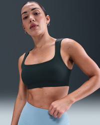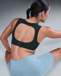 Stretch freely—this bra's InfinaSoft fabric gives you a gentle hold with lightweight softness that wicks sweat. A breathable liner offers subtle coverage while the open back invites plenty of airflow. Benefits - Nike Dri-FIT technology moves sweat away from your skin for quicker evaporation, helping you stay dry and comfortable. - Light support gives you a gentle hold with plenty of freedom that's great for low-impact workouts or all-day comfort. Product Details - Swoosh logo at back - Body: 63% nylon/37% spandex. Lining: 88% polyester/12% spandex. - Machine Wash - Imported - Shown: Seaweed/White - Style: HQ3956-390 SIZE & FIT Model is wearing size S Model height: 5′6″168cm Model bust: 32″81cm Tight fit: snug and form-fitting Light support: feels ke a soft hug with plenty of freedom
