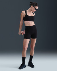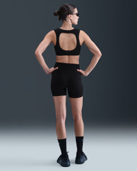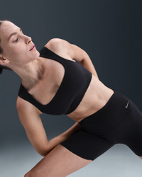 Stretch freely—this bra's InfinaSoft fabric gives you a gentle hold with lightweight softness that wicks sweat. A breathable liner offers subtle coverage while the open back invites plenty of airflow. Benefits - Nike Dri-FIT technology moves sweat away from your skin for quicker evaporation, helping you stay dry and comfortable. - Light support gives you a gentle hold with plenty of freedom that's great for low-impact workouts or all-day comfort. Product Details - Swoosh logo at back - Body: 63% nylon/37% spandex. Lining: 88% polyester/12% spandex. - Machine Wash - Imported - Shown: Black/Cool Grey - Style: HQ3956-010 SIZE & FIT Female model is wearing size S and is 5'10"178cm Tight fit: snug and form-fitting Light support: feels ke a soft hug with plenty of freedom