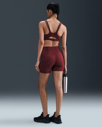 Move with total freedom in this sweat-wicking Zenvy bra. Our InfinaSoft fabric stretches effortlessly with lightweight softness and gives you a gentle hold that's great for low-impact workouts or all-day comfort. Benefits - Nike Dri-FIT technology moves sweat away from your skin for quicker evaporation, helping you stay dry and comfortable. - Opening at back offers added breathability. Product Details - Elastic chest band - Swoosh logo at back - Body: 63% nylon/37% spandex. Lining: 88% polyester/12% spandex. Pad top fabric/Pad back fabric: 100% polyester. Pad: 100% polyurethane. - Machine wash - Imported - Shown: Burgundy Crush/Dark Team Red/Cool Grey - Style: HQ2802-652 SIZE & FIT Model is wearing size S Model height: 5′11″180cm Model bust: 30″76cm Tight fit: snug and form-fitting Light support: feels ke a soft hug with plenty of freedom