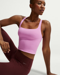 Bend and stretch in total confidence with this Zenvy bra tank. Still lightweight, its updated InfinaSoft fabric is now ultrasoft with stretch designed to recover its shape wear after wear. Light support with sewn-in pads gives you a gentle hold that's great for low-impact workouts and all-day comfort. Benefits - Nike Dri-FIT technology moves sweat away from your skin for quicker evaporation, helping you stay dry and comfortable. - Light support gives you a gentle hold with plenty of freedom that's great for low-impact workouts or all-day comfort. - Sewn-in pad offers subtle shaping and coverage without shifting or folding. Product Details - Body: 69% nylon/31% spandex. Panels lining: 88% polyester/12% spandex. Pad back fabric: 100% polyester. Pad: 100% polyurethane. - Machine wash - Imported - Shown: Light Magenta/White - Style: IB9872-503 SIZE & FIT Model is wearing size S Model height: 5'11"180cm Model bust: 34"86cm Tight fit: snug and form-fitting Light support: feels ke a soft hug with plenty of freedom