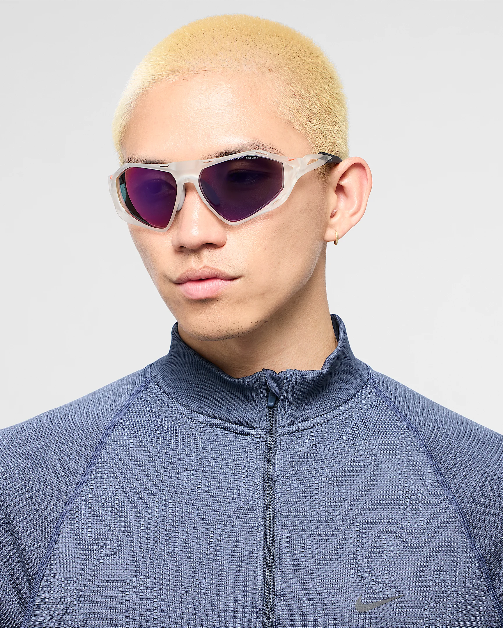 Experience the win in the Nike Zeus Rise, inspired by athletes and designed to push boundaries. Featuring an iconic lightweight design made from G850, this prescription-ready sunglass features a wrap front providing maximum coverage. Built with Nike Max+ lenses to ensure superior clarity and precise vision from all angles, ensuring you stay focused and unstoppable. Benefits - Nike Road Tint blocks harsh light on the track and road. - Nike Max + helps reduce light reflection and provides precise vision from all angles. - 8-base curved lens and sport wrap frame offers maximum coverage and light blockage. - Nose pad and temple arms are flexible and self-adjust to the shape of your face for a comfortable, personalized fit. Product Details - Injected frame material is derived from at least 40% castor bean oil. - Prescription-friendly frame. - 100% UVA/UVB protection. - Shown: Clear - Style: IF1113X-900