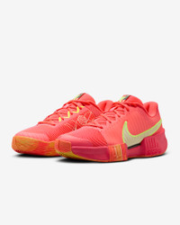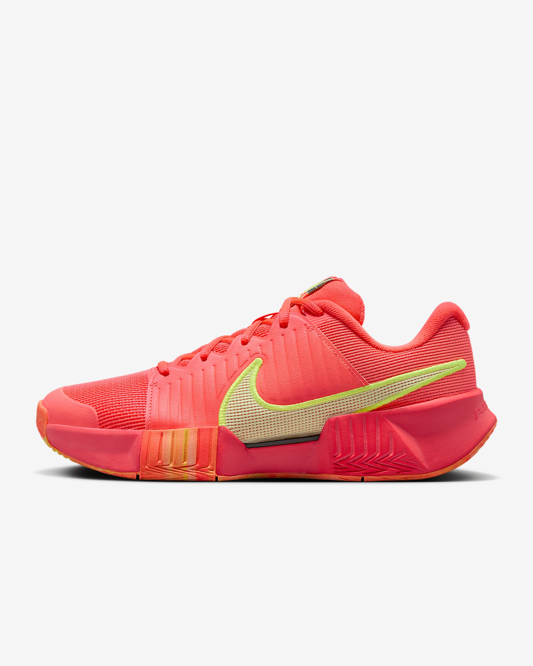 Whether you’re digging, dinking or trying to barrel a ball down the line after scrambling out of a split set, the all-new Nike Zoom Challenge can help you hold serve. Air Zoom units help keep you fresh when in the middle of a long rally or volley at the net, ideal for getting to untouchable shots both near and far. Benefits - Air Zoom units in the heel and forefoot add a spring to your step. - Synthetic overlays provide lateral support and help keep your heel secure. - Soft collar and padded heel give you comfort and security around your ankle. - Mesh panels offer breathability. - Extra rubber in the toe area, specifically the tip of toe, provides durability. - High-abrasion rubber in the forefoot offers durability and traction. Product Details - Shown: Hyper Orange/Volt/Medium Ash/Barely Volt - Style: FQ4155-800