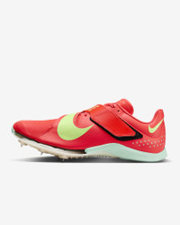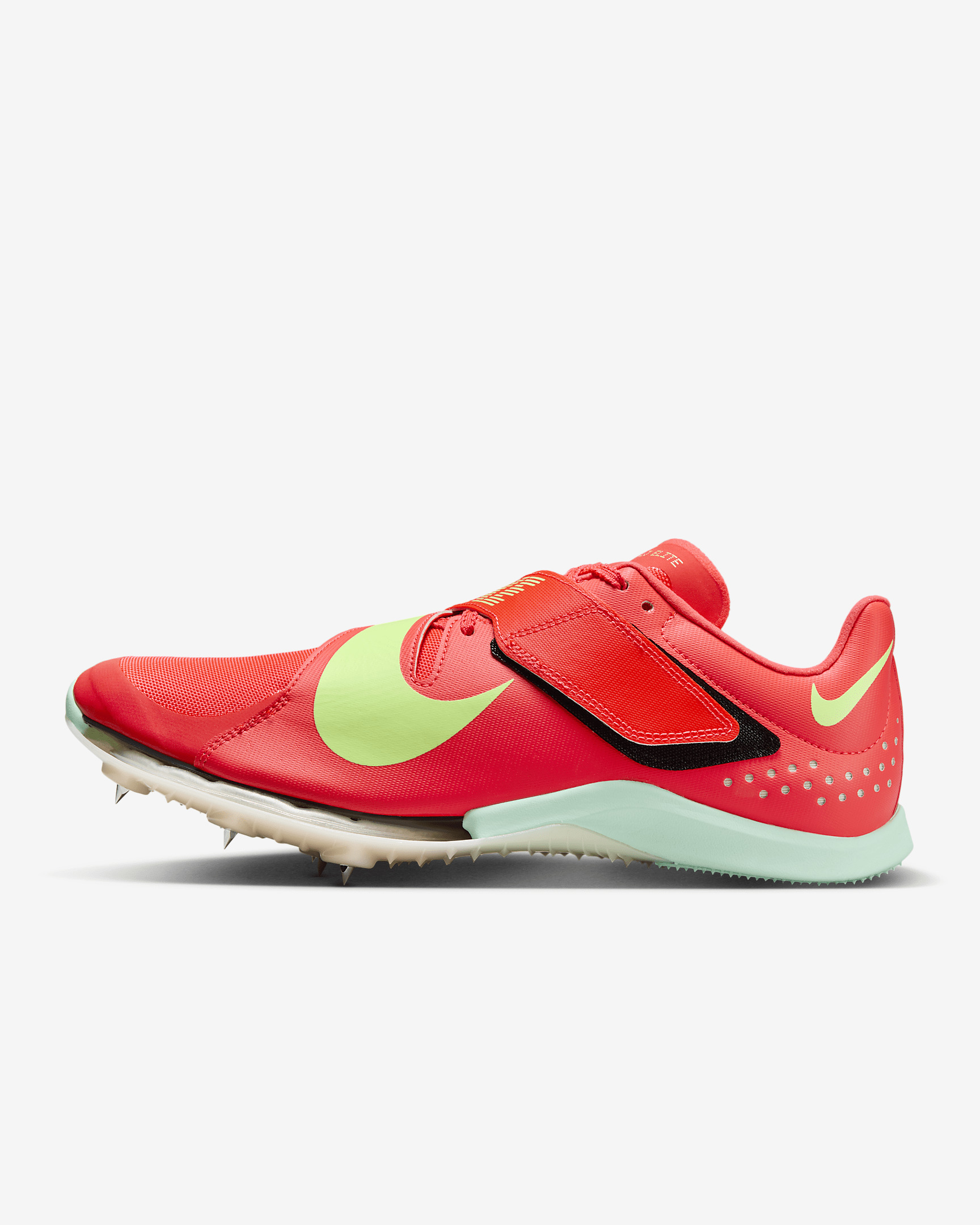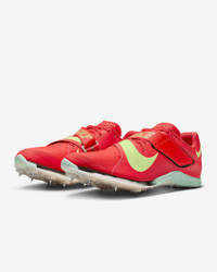 We geared the ultralightweight Nike Long Jump Elite to reach new heights. More bounce and stability help give you the confident speed you need as you reach liftoff. Underfoot traction helps you stay upright over multiple surfaces. Need a secure fit? An adjustable X-cross strap lets you fasten in and get ready to fly to your personal best. More Benefits - Lightweight, woven fabric at the forefoot feels breathable. - Thick, molded foam at the heel adds cushioning specifically designed for the needs of the long jump athlete. - Perforations around the heel help reduce weight and increase ventilation. Product Details - Shown: Bright Crimson/Lime Blast/Mint Foam/Washed Coral - Style: FZ9326-600
