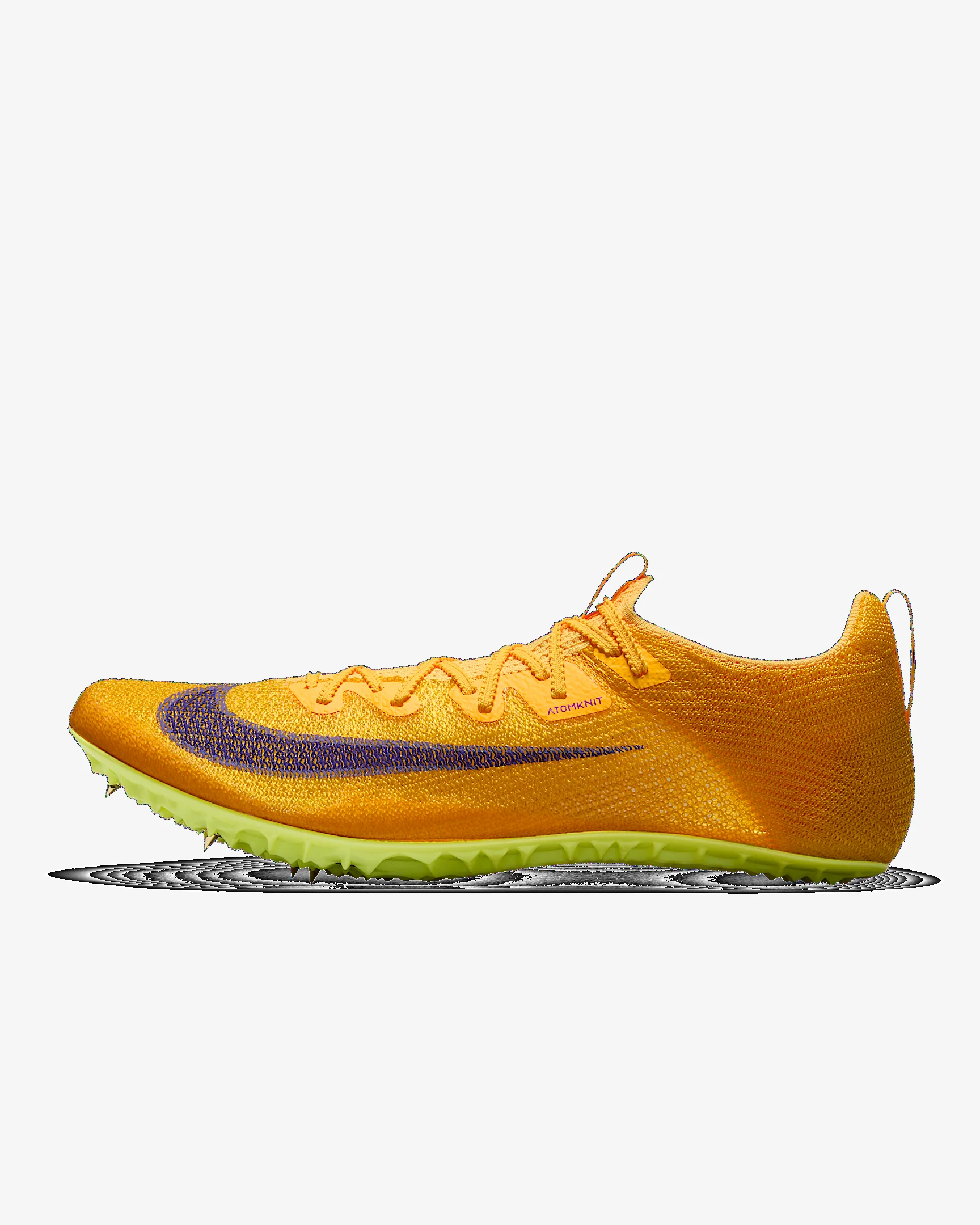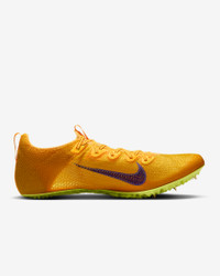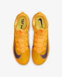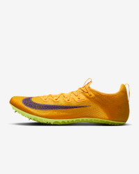 Made for runs from 100 meters to 400 meters, the Superfly Elite 2 is secure, stable and feathery on foot. Its removable pins on the outsole help keep your feet gripped to the track to help fuel your breakaway speed. More Benefits - Pad-print Swoosh logo helps minimize weight. - Notched laces provide a secure fit and help reduce the chances of the laces coming untied. Product Details - Ideal for 100m-400m sprinters - World Athletics approved - Eight removable stainless-steel pins - Shown: Citron Pulse/Volt Ice/Laser Orange/Indigo Burst - Style: FZ9662-800