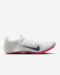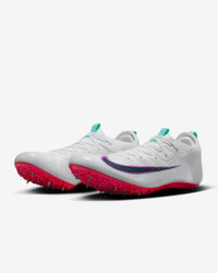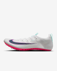 Made for runs from 100 meters to 400 meters, the Superfly Elite 2 is secure, stable and feathery on foot. Its removable pins on the outsole help keep your feet gripped to the track to help fuel your breakaway speed. More Benefits - Pad-print Swoosh logo helps minimize weight. - Notched laces provide a secure fit and help reduce the chances of the laces coming untied. Product Details - Ideal for 100m-400m sprinters - World Athletics approved - Eight removable stainless-steel pins - Shown: White/Bright Crimson/Hyper Violet/Obsidian - Style: FZ9662-101