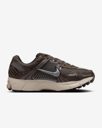 Carve a new lane for yourself in the Zoom Vomero 5—your go-to for complexity, depth and easy styling. The version sports a vintage aesthetic as a perfect throwback to early-aughts runners. The richly layered design includes textiles, leather and plastic accents that come together to make one of the coolest sneakers of the season. Benefits - Upper mixes real and synthetic leather for a layered look built to last. - Mesh panels and ventilation ports on the heel keep it light and breathable. - Snappy and responsive, Zoom Air cushioning helps provide a quick-off-the-ground sensation. - Plastic caging on the side creates a supportive feel. - Rubber outsole gives you durable traction. Product Details - Metallic Swoosh logo - Reflective details - Not intended for use as Personal Protective Equipment (PPE) - Shown: Baroque Brown/Light Orewood Brown/Hemp/Chrome - Style: FN6742-201