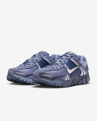 Carve a new lane for yourself in the Zoom Vomero 5—your go-to for complexity, depth and easy styling. The richly layered design includes textiles, leather and plastic accents that come together to make one of the coolest sneakers of the season. Benefits - Real and synthetic leather on the upper add durability. - Mesh panels and ventilation ports on the heel keep it light and breathable. - Zoom Air cushioning helps provide a quick-off-the-ground sensation. - Plastic caging on the side adds support. - Rubber outsole gives you durable traction. Product Details - Reflective details - Not intended for use as Personal Protective Equipment (PPE) - Shown: World Indigo/Sanded Purple/Football Grey - Style: HQ0458-400