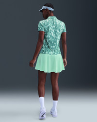 Run the court in this sweat-wicking tennis skirt. The light and flowy woven outer layer gives you freedom to move while fitted built-in shorts offer secure coverage and storage. Benefits - Nike Dri-FIT technology moves sweat away from your skin for quicker evaporation, helping you stay dry and comfortable. - Inner shorts let you tuck spare balls under the hem for convenient storage. - Mesh in waistband enhances breathability. - Drop-in pockets on both legs of inner shorts fit most phones. Product Details - Body/Gusset lining: 100% polyester. Tight/Panels lining: 78-79% polyester/21-22% spandex. Elastic: 86% polyester/14% spandex. - NikeCourt logo on left thigh - Machine wash - Imported - Shown: Mint Foam/Mint Foam - Style: FZ6726-353 SIZE & FIT Model is wearing size S and is 5′11″180cm Standard fit: easy and traditional