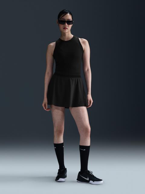 This classic skirt is made with lightweight woven fabric for cool comfort on the court. Stretchy, built-in shorts give you secure coverage while pockets on both legs offer easy access to your essentials. Benefits - Nike Dri-FIT technology moves sweat away from your skin for quicker evaporation, helping you stay dry and comfortable. - Mesh in elastic waistband enhances breathability - Drop-in pockets on inner shorts fit most phones. Product Details - Body: 100% polyester. Tight/Panels lining: 78-79% polyester, 21-22% spandex. Elastic: 86% polyester/14% spandex. Gusset lining: 100% polyester. - Machine Wash - Imported - Shown: Celestine Blue/Celestine Blue - Style: FZ6729-441 SIZE & FIT Model is wearing size S and is 5′9″175cm Standard fit: easy and traditional