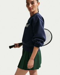 Made with our high-waisted skirts and shorts in mind, this brushed fleece crew neck is a cozy, cropped option ready for the court. Benefits - Our midweight brushed fleece feels extra soft on the inside and smooth on the outside, helping you stay comfortable while keeping its structured shape. - Dropped shoulders and roomy armholes offer a relaxed feel. Product Details - Slightly cropped length - Embroidered NikeCourt graphic - Swoosh logo - NikeCourt patch at back neck - Body: 80% Cotton, 20% Polyester; Rib: 97% Cotton, 3% spandex - Machine wash - Imported - Shown: Midnight Navy/Sail - Style: IB0757-410 SIZE & FIT Standard fit: easy and traditional