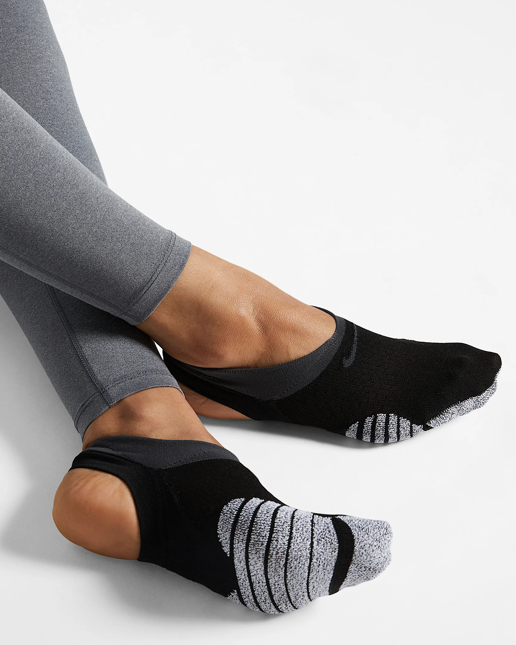 The NikeGrip Studio Footie features forefoot cushioning and is designed to allow your heel to directly contact various surfaces in the studio for a more comfortable and "tuned in" workout. Benefits - An open heel allows for a much more natural feel when working out in the studio rather than the gym. - Underfoot NikeGrip yarns provide added traction and stability on any surface. - Mesh fabric on top for ideal breathability and ventilation. - Extra cushioning at the toes and the ball of your feet for added comfort throughout your entire workout. Product Details - Fabric: 77% nylon/12% polyester/11% spandex - Machine wash - Imported - Shown: Black/Anthracite/Anthracite - Style: SK0113-010