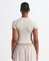 Meet your new layering essential. Our Airy fabric keeps this form-fitting baby tee ultralightweight and breathable. Product Details - Front, side and back seam details - Silicone matte logo at center back neck - 92% nylon/8% spandex - Machine wash - Imported - Shown: NSKM STONE - Style: TPTSH2738-STO SIZE & FIT Model is wearing size S and is 5’11”180cm Tight fit: snug and form-fitting