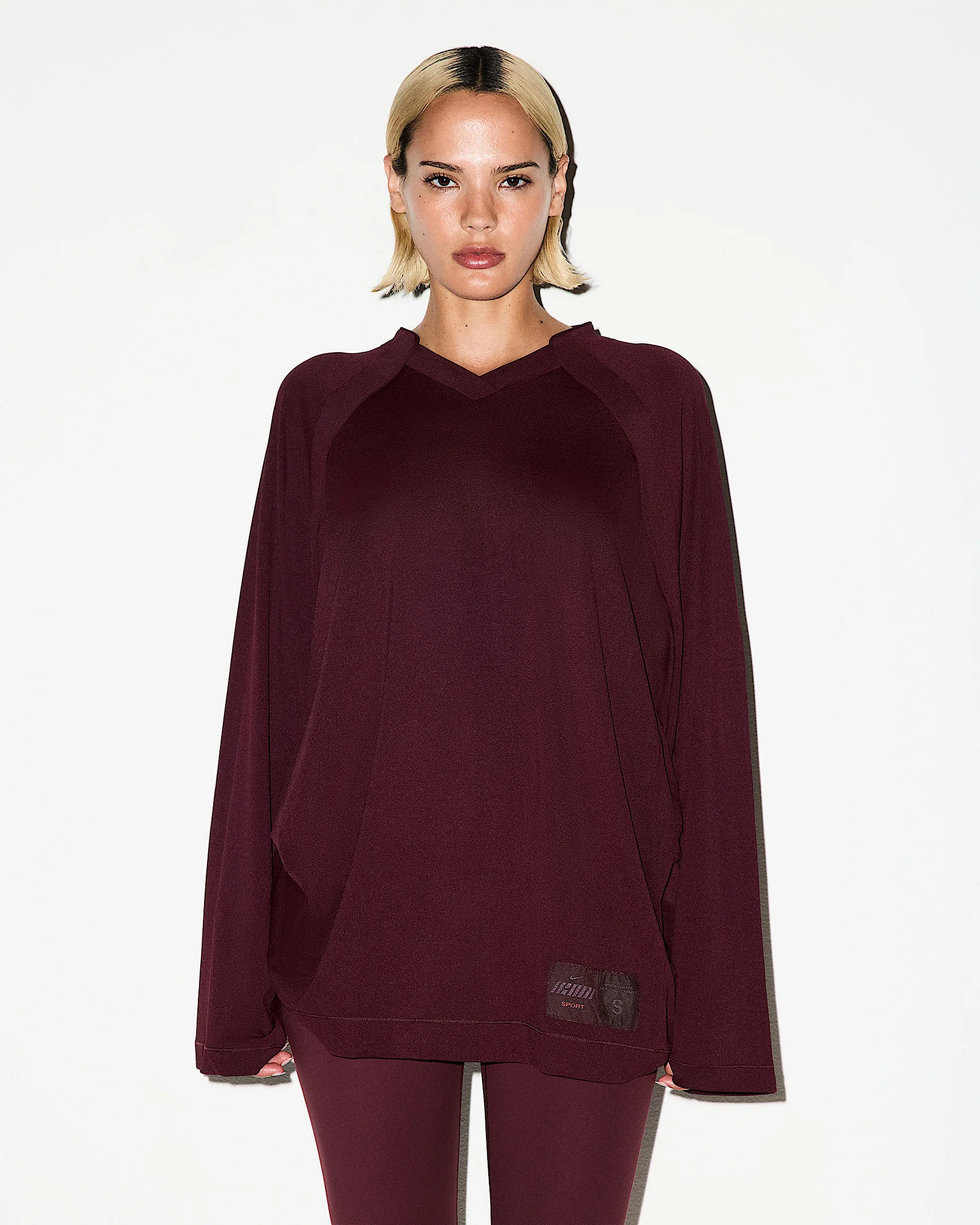 Crafted from our ultralightweight and breathable Airy fabric, this oversized long-sleeve top makes layering a breeze. Benefits - Our Airy fabric is ultralightweight and breathable for easy layering. - Raglan sleeves offer freedom of movement and a relaxed feel. Product Details - Woven patch logo on left - 92% polyamide/8% spandex - Machine wash - Imported - Shown: NSKM CURRANT - Style: LSLSL8630W-CUR SIZE & FIT Model 1 is wearing size S and is 5'11"179cm Model 2 is wearing size 2X and is 5'10"178cm Oversized fit: exaggerated and spacious