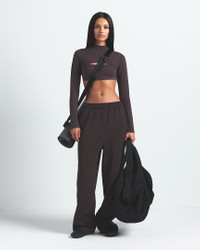 Crafted from smooth knit fabric, our track-inspired pants easily layer over your workout gear. Snaps at the sides allow for airflow and let you play with your style. Benefits - Our Matte Tricot knit fabric is smooth for a comfortable, wear-all-day feel. - Elastic waistband with drawcord helps you customize your fit. Product Details - Snaps at the sides - Zippered side pockets - 33" inseam - Matte silicone logo on wearer's left leg - 50% cotton/46% polyester/4% spandex - Machine wash - Imported - Shown: NSKM DARK ROAST - Style: BOWLG3533-DRT SIZE & FIT Model is wearing size XS and is 5'9"175cm Loose fit: roomy and relaxed Fl length: hits below ankle Inseam: 33"