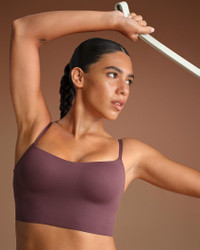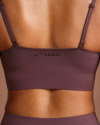 This bra lifts and enhances with wireless contoured pads and adjustable straps for light support. We designed it with our sculpting Matte fabric, sweat-wicking technology and longline coverage to make it a studio essential you can wear anywhere. Benefits - Our soft Matte fabric is designed to sculpt and smooth. - Nike Dri-FIT technology moves sweat away from your skin for quicker evaporation, helping you stay dry and comfortable. - Mesh lining helps add breathability. - Long-line design provides added coverage and support. - Adjustable straps help you personalize your fit. - Wireless contoured pads lift and enhance. Product Details - Pullover style - Four-way stretch - Scoop neck - Silicone matte logo at center back - 83% polyamide/17% Lycra® spandex - Machine wash - Imported - Shown: NSKM CURRANT - Style: BRSPT5115-CUR SIZE & FIT Model 1 is wearing size S with a bust size of 33"84cm Model 2 is wearing size 2X with a bust size of 51"130cm Tight fit: snug and form-fitting Light support: feels ke a soft hug with plenty of freedom
