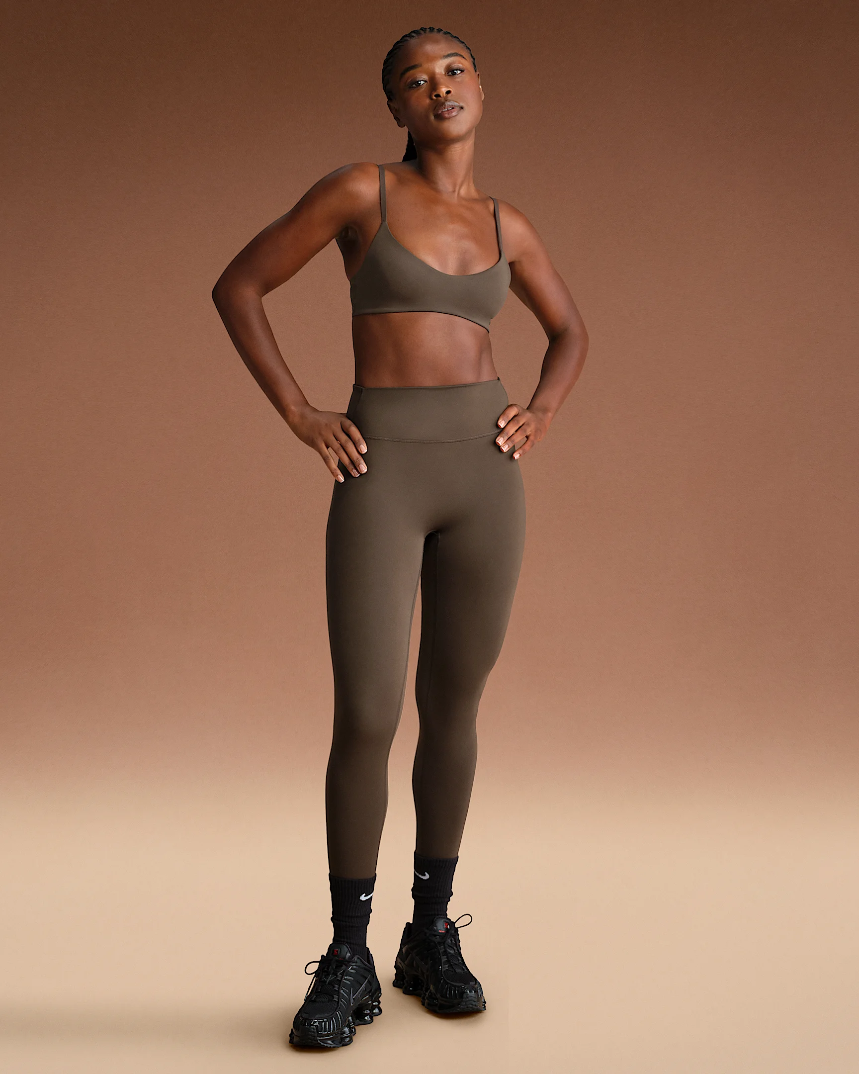 Our Matte fabric sculpts and smoothes your curves while side-dart details accentuate your shape. We added our sweat-wicking Dri-FIT technology to make these leggings a studio essential you can wear anywhere. Benefits - Our soft Matte fabric is designed to sculpt and smooth. - Nike Dri-FIT technology moves sweat away from your skin for quicker evaporation, helping you stay dry and comfortable. - Darts at the side contour your curves. Product Details - 26" inseam - Double-layered waistband - Four-way stretch - Cotton gusset - Silicone matte logo at center back - 83% polyamide/17% Lycra® spandex - Machine wash - Imported - Shown: NSKM Dark Sepia - Style: BOLEG7005W-DSP SIZE & FIT Model 1 is wearing size S and is 5'8"173cm Model 2 is wearing size 2X and is 5'10"178cm Tight fit: snug and form-fitting 78 length: hits at ankle Inseam: 26" High-Waisted: sits at or above your natural waist for more coverage
