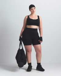 Our Matte fabric sculpts and smoothes your curves while side-dart details accentuate your shape. We added our sweat-wicking Dri-FIT technology to make these biker shorts a studio essential you can wear anywhere. Benefits - Our soft Matte fabric is designed to sculpt and smooth. - Nike Dri-FIT technology moves sweat away from your skin for quicker evaporation, helping you stay dry and comfortable. - Darts at the side contour your curves. Product Details - 5" inseam - Double-layered waistband - Four-way stretch - Cotton gusset - Silicone matte logo at center back - 83% polyamide/17% Lycra® spandex - Machine wash - Imported - Shown: NSKM Obsidian - Style: BOBKS7022W-OBD SIZE & FIT Model 1 is wearing size S and is 5'9"175cm Model 2 is wearing size 2X and is 5'7"170cm Tight fit: snug and form-fitting Inseam: 5" High-Waisted: sits at or above your natural waist for more coverage