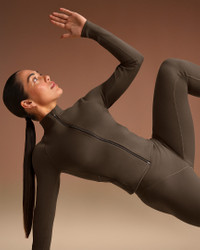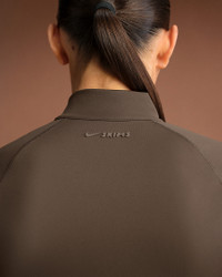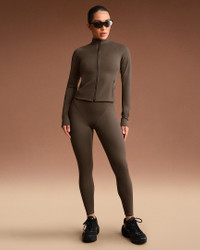 Meet your perfect finishing touch for a sleek, layered look. Made with our sculpting Matte fabric and sweat-wicking Dri-FIT technology, this snug and stretchy jacket is a studio essential you can wear anywhere. Benefits - Our soft Matte fabric is designed to sculpt and smooth. - Nike Dri-FIT technology moves sweat away from your skin for quicker evaporation, helping you stay dry and comfortable. - Mock-neck design provides added coverage and a sleek look. Product Details - Full-zip - Side-pockets with hidden zippers - Mock neck - Four-way stretch - Silicone matte logo at center back - 83% polyamide/17% Lycra® spandex - Machine wash - Imported - Shown: NSKM Dark Sepia - Style: ZUZUP8315W-DSP SIZE & FIT Model 1 is wearing size S and is 5'6"168cm Model 2 is wearing size 2X and is 5'10"178cm Tight fit: snug and form-fitting