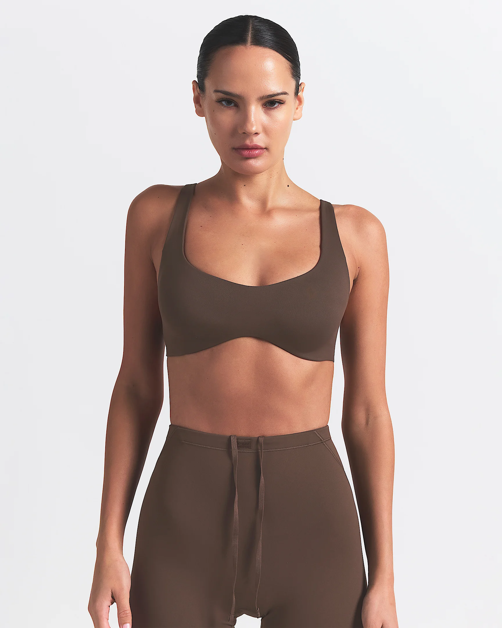 This sleek, light-support bra features a shaped underbust and built-in pads that mold to your body to help enhance your shape. Our sculpting Matte fabric and sweat-wicking Dri-FIT technology turn it into a studio essential you can wear anywhere. Benefits - Our soft Matte fabric is designed to sculpt and smooth. - Nike Dri-FIT technology moves sweat away from your skin for quicker evaporation, helping you stay dry and comfortable. - Shaped underbust with encased elastic and built-in foam pads give you comfortable coverage and a sleek look. Product Details - Pullover style - Four-way stretch - Scoop neck - Matte silicone logo at center back - 83% nylon/17% spandex - Machine wash - Imported - Shown: NSKM DARK SEPIA/NSKM DARK SEPIA/NSKM DARK SEPIA - Style: BABRA9483W-DSP SIZE & FIT Model is wearing size S Tight fit: snug and form-fitting Light support: feels ke a soft hug with plenty of freedom