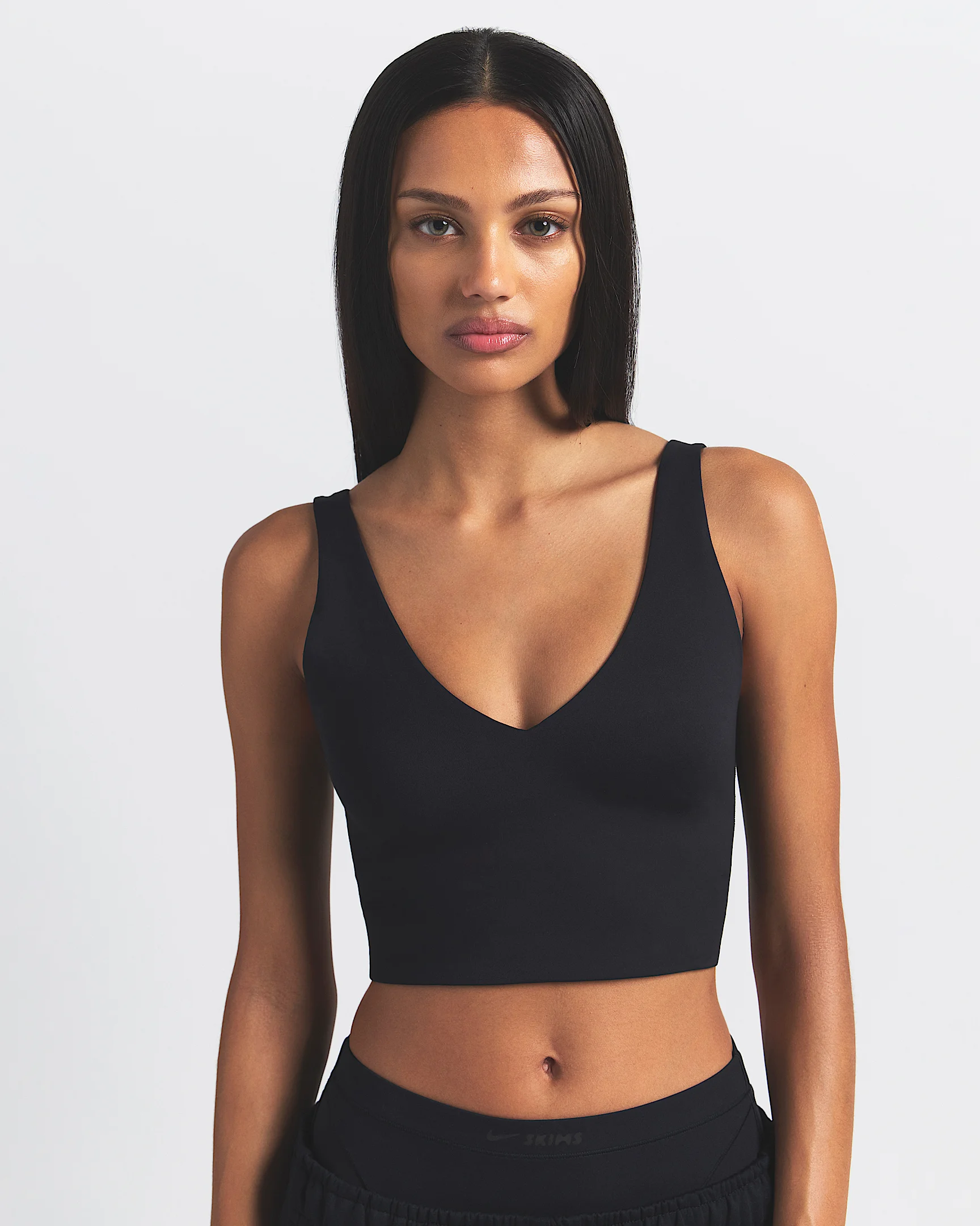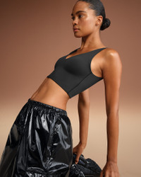 Offering light support, our V-neck long-line bra molds to your body for a fit that never flattens. It's crafted from our sculpting Matte fabric and sweat-wicking Dri-FIT technology, making it a studio essential you can wear anywhere. Benefits - Our soft Matte fabric is designed to sculpt and smooth. - Nike Dri-FIT technology moves sweat away from your skin for quicker evaporation, helping you stay dry and comfortable. - Long-line design provides added coverage and support. Product Details - Pullover style - Four-way stretch - V-neck - Silicone matte logo at center back - 83% polyamide/17% Lycra® spandex - Machine wash - Imported - Shown: NSKM OBSIDIAN - Style: BALLL8616W-OBD SIZE & FIT Model 1 is wearing size S with a bust size of 32"81cm Model 2 is wearing size 2X with a bust size of 51"130cm Tight fit: snug and form-fitting Medium support: feels ke a snug hold to keep everything in place
