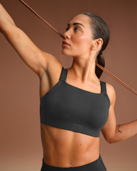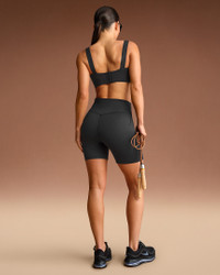To give you high support, we designed this bra with adjustable, wide straps and built-in pads that mold to you and enhance your shape. Our sculpting Matte fabric and sweat-wicking technology make it a studio essential you can wear anywhere. Benefits - Our soft Matte fabric is designed to sculpt and smooth. - Nike Dri-FIT technology moves sweat away from your skin for quicker evaporation, helping you stay dry and comfortable. - Mesh lining helps add breathability. - Built-in foam molds to you for extra comfort and coverage. - Adjustable bonded straps and internal bonded panels provide added stability and support. Product Details - Hook-and-eye closure - Four-way stretch - Scoop neck - Silicone matte logo at center front - 83% polyamide/17% Lycra® spandex - Machine wash - Imported - Shown: NSKM Obsidian - Style: BRSPT5121-OBD SIZE & FIT Model is wearing size 34B with a bust size of 32"81cm Tight fit: snug and form-fitting High support: feels ke locked in support that keeps motion to a minimum
