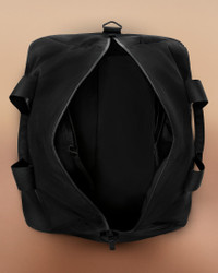 A must-have for any workout, this gym bag features multiple interior and side pockets for easy organizing of all your essentials. A large, padded compartment fits your laptop or tablet, and a detachable dust bag lets you store your shoes separate from your other gear. Benefits - Short handles pair with a removable and adjustable shoulder strap for comfortable, convenient carrying options. - Internal laptop sleeve can fit most laptops and tablets. - Detachable dust bag provides a dedicated space for your sneakers. Product Details - 14" L x 18" W x 19" H - Key fob attachment - Matte silicone logo at center front - Branded matte silicone zipper tab - 100% nylon - Spot clean - Imported - Shown: NSKM Obsidian - Style: BPBGS2893-OBD