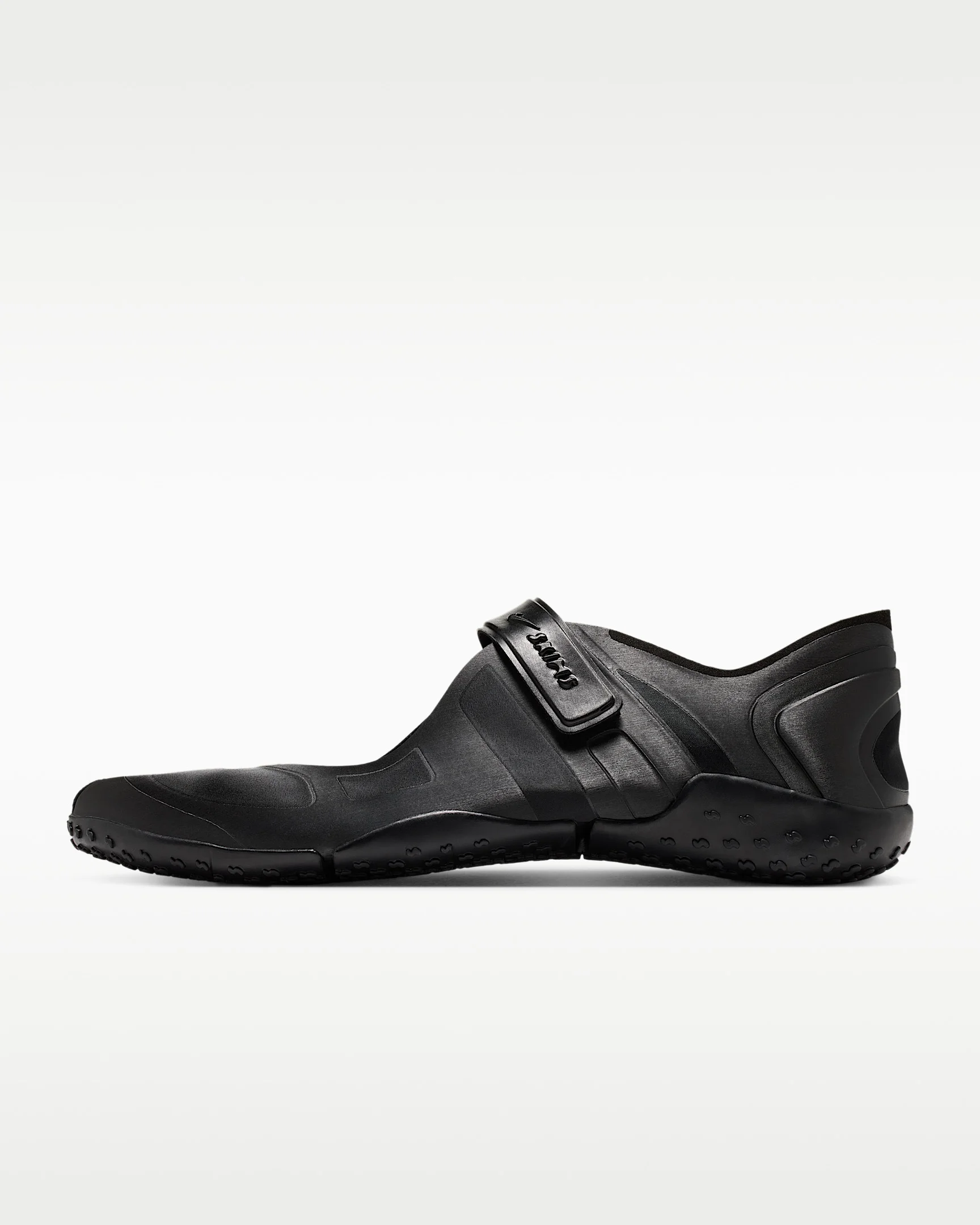 The NikeSKIMS Rift Satin takes the chic silhouette and adds satin for a sleek, smooth shoe. Soft foam underfoot makes every step dreamy while the distinct split-toe design bridges the gap between casual and elegant. Subtle NikeSKIMS branding keeps the look minimalistic and luxurious. Benefits - Hook-and-loop strap at the midfoot gives you a personalized fit. - Rubber detailing on the outsole features rugged tread for added durability and traction. Product Details - Shown: Black/Black/Black - Style: IQ7158-001