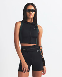 Designed to feel luxuriously light, our quick-drying Shine fabric gives this medium-support bra a sleek look with subtle sheen. Built-in pads mold to your body to help enhance your shape. A zipper in the front allows for easy changing. Benefits - Our sleek Shine fabric is lightweight and breathable with a smoothing fit and subtle sheen. - Full-length zipper and interior hook-and-loop closure offers easy changing and a secure hold. - High-neck design offers a touch of extra coverage. - Built-in foam pads mold to your bust for comfortable coverage. Product Details - Four-way stretch - Full-zip closure - Elastic underbust - Contrast logo at wearer's left - 78% nylon/ 22% spandex - Machine wash - Imported - Shown: NSKM OBSIDIAN/NSKM DARK TEAL - Style: BABRA9497W-OBT SIZE & FIT Model is wearing size XS and typically wears size 32A Tight fit: snug and form-fitting Medium support: feels ke a snug hold to keep everything in place