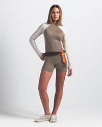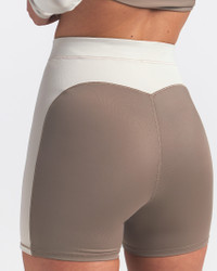 High waisted and curve hugging, these biker shorts pair our quick-drying Shine fabric with color-block side panels for a sleek, smoothing fit and a luxuriously light feel. Benefits - Our sleek Shine fabric is lightweight and breathable with a smoothing fit and subtle sheen. - Encased elastic waistband helps give you a stay-put fit. Product Details - 5" inseam - Four-way stretch - logo at wearer's left hip - Cotton gusset - 78% nylon/22% spandex - Machine wash - Imported - Shown: NSKM TRUFFLE/NSKM STONE - Style: SHSHO9501W-TST SIZE & FIT Model is wearing size S and is 5’7”170cm Tight fit: snug and form-fitting