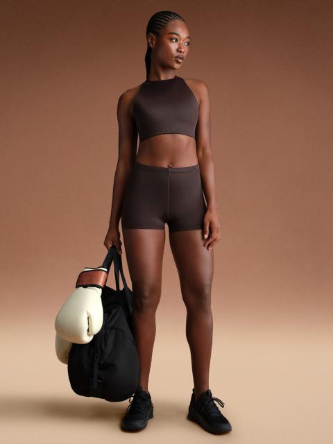 Designed to feel luxuriously light and hug your curves, our quick-drying Shine fabric gives these boyshorts a sleek look and a subtle sheen. Bold design lines and a side-dart details accentuate your shape. Benefits - Our sleek Shine fabric is lightweight and breathable with a smoothing fit and subtle sheen. - Internal drawcord provides a secure, adjustable fit. - Darts at the side contour your curves. Product Details - 2" inseam - Mid-rise waistband - Four-way stretch - Cotton gusset - Silicone matte logo at center back - 78% polyamide/22% spandex - Machine wash - Imported - Shown: NSKM CURRANT - Style: SHSHO9853W-CUR SIZE & FIT Model 1 is wearing size S and is 5'11"179cm Model 2 is wearing size 2X and is 5'9"175cm Tight fit: snug and form-fitting Inseam: 2"