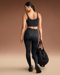Designed to feel luxuriously light, our quick-drying Shine fabric gives this medium-support bra a sleek look with subtle shine. The longline silhouette offers added coverage and a supportive feel. Benefits - Our sleek Shine fabric is lightweight and breathable with a smoothing fit and subtle sheen. - Scoop-neck design in the front and back layers well under tees and tops. Product Details - Pullover style - Scoop neck - Silicone matte logo at center back - 78% nylon/22% spandex - Machine wash - Imported - Shown: NSKM Obsidian - Style: BRSPT5149W-OBD SIZE & FIT Model 1 is wearing size S with a bust size of 32"81cm Model 2 is wearing size 2X with a bust size of 51"130cm Tight fit: snug and form-fitting Medium support: feels ke a snug hold to keep everything in place