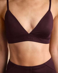 Designed to feel luxuriously light, our quick-drying Shine fabric gives this triangle bra a sleek look with subtle shine. Offering light support, it features adjustable straps and lightly molded, built-in pads for coverage and support. Benefits - Our sleek Shine fabric is lightweight and breathable with a smoothing fit and subtle sheen. - Soft, lightly molded, built-in pads give you extra comfort and coverage. - Adjustable straps help you personalize your fit. Product Details - Pullover style - Elastic underband - Silicone matte logo at center front - 78% nylon/22% spandex - Machine wash - Imported - Shown: NSKM CURRANT - Style: BRSPT7842W-CUR SIZE & FIT Model 1 is wearing size S with a bust size of 32"81cm Model 2 is wearing size 2X with a bust size of 40"102cm Tight fit: snug and form-fitting Light support: feels ke a soft hug with plenty of freedom