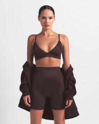 Designed to feel luxuriously light, our quick-drying Shine fabric gives this triangle bra a sleek look with subtle shine. Offering light support, it features adjustable straps and lightly molded, built-in pads for coverage and support. Benefits - Our sleek Shine fabric is lightweight and breathable with a smoothing fit and subtle sheen. - Soft, lightly molded, built-in pads give you extra comfort and coverage. - Adjustable straps help you personalize your fit. Product Details - Pullover style - Elastic underband - Silicone matte logo at center front - 78% nylon/22% spandex - Machine wash - Imported - Shown: NSKM Phoenix - Style: BRSPT7842W-PHO SIZE & FIT Model 1 is wearing size S and is 5'11"179cm Model 2 is wearing size 2X and is 5'9"175cm Tight fit: snug and form-fitting Light support: feels ke a soft hug with plenty of freedom