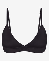 Designed to feel luxuriously light, our quick-drying Shine fabric gives this triangle bra a sleek look with subtle shine. Offering light support, it features adjustable straps and lightly molded, built-in pads for coverage and support. Benefits - Our sleek Shine fabric is lightweight and breathable with a smoothing fit and subtle sheen. - Soft, lightly molded, built-in pads give you extra comfort and coverage. - Adjustable straps help you personalize your fit. Product Details - Pullover style - Elastic underband - Silicone matte logo at center front - 78% nylon/22% spandex - Machine wash - Imported - Shown: NSKM Obsidian - Style: BRSPT7842W-OBD SIZE & FIT Model 1 is wearing size S with a bust size of 31"79cm Model 2 is wearing size 2X with a bust size of 40"102cm Tight fit: snug and form-fitting Light support: feels ke a soft hug with plenty of freedom