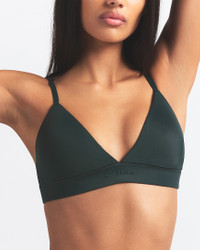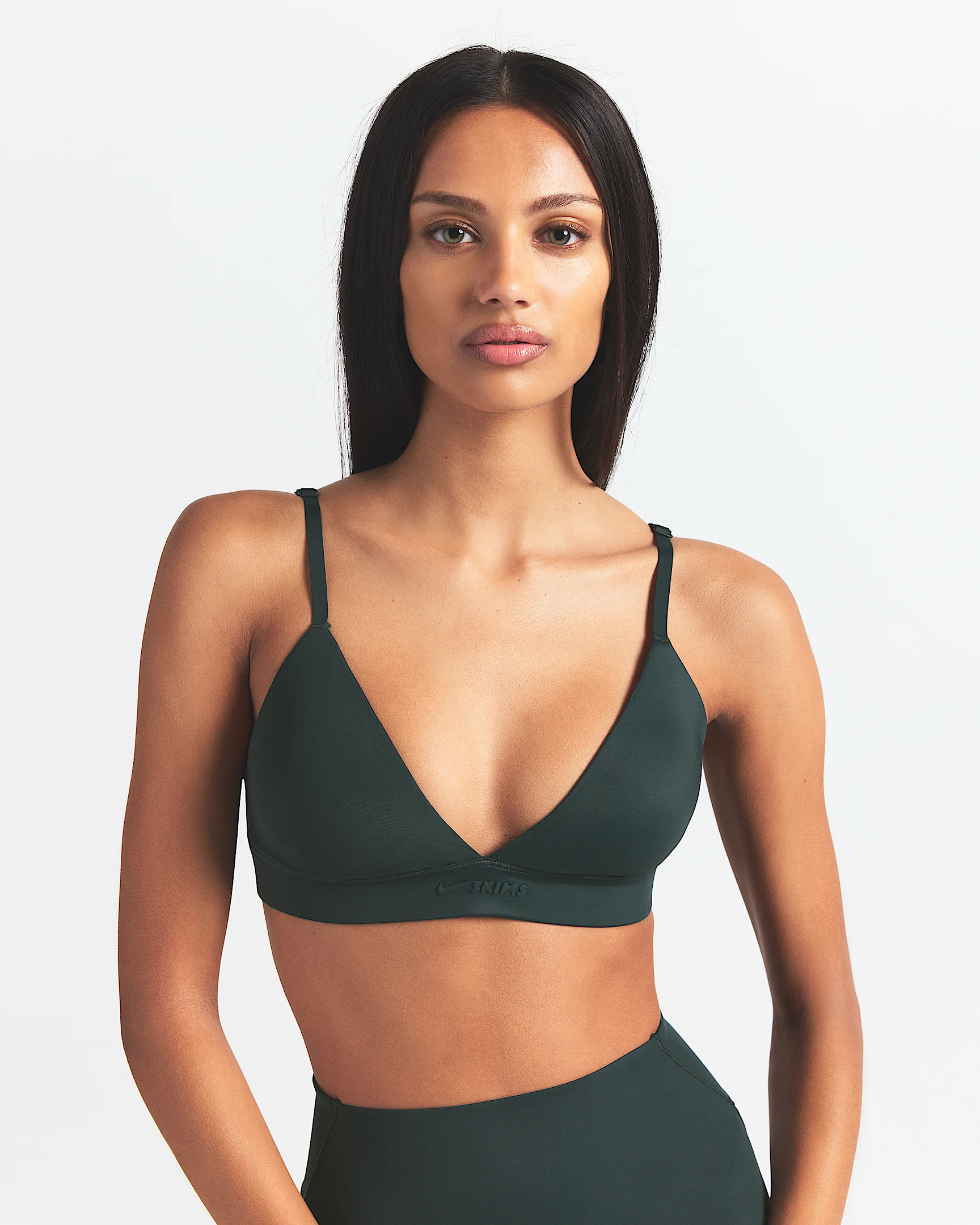 Designed to feel luxuriously light, our quick-drying Shine fabric gives this triangle bra a sleek look with subtle shine. Offering light support, it features adjustable straps and lightly molded, built-in pads for coverage and support. Benefits - Our sleek Shine fabric is lightweight and breathable with a smoothing fit and subtle sheen. - Soft, lightly molded, built-in pads give you extra comfort and coverage. - Adjustable straps help you personalize your fit. Product Details - Pullover style - Elastic underband - Silicone matte logo at center front - 78% nylon/22% spandex - Machine wash - Imported - Shown: NSKM DARK TEAL/NSKM DARK TEAL - Style: BRSPT7842W-DKT SIZE & FIT Model is wearing size XS and typically wears size 32A Tight fit: snug and form-fitting Light support: feels ke a soft hug with plenty of freedom