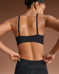 Designed to feel luxuriously light, our quick-drying Shine fabric gives this V-neck bra a sleek look with subtle sheen. Offering light support, it features lightly molded, built-in pads for coverage. The racerback design and adjustable straps finish the look. Benefits - Our sleek Shine fabric is lightweight and breathable with a smoothing fit and subtle sheen. - Adjustable straps help you personalize your fit. - Racerback design allows for comfortable, unrestricted movement. - Lightly molded, built-in pads give you coverage and support. Product Details - Pullover style - Elastic underband - Silicone matte logo at center front - 78% polyamide/22% spandex - Machine wash - Imported - Shown: NSKM Obsidian - Style: BRSPT5191W-OBD SIZE & FIT Model 1 is wearing size S with a bust size of 31"79cm Model 2 is wearing size 2X with a bust size of 40"102cm Tight fit: snug and form-fitting Light support: feels ke a soft hug with plenty of freedom