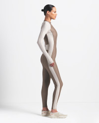 Sleek and breathable, this full-length bodysuit hugs your curves with bold style. Our quick-drying Shine fabric combines with color-blocked details to give you a smoothing fit and a luxuriously light feel. Benefits - Our sleek Shine fabric is lightweight and breathable with a smoothing fit and subtle sheen. - Front zipper and interior hook-and-loop closure offers easy changing and a secure hold. Product Details - 26" inseam - Four-way stretch - Contrast logo at wearer's left chest - 78% nylon/22% spandex - Machine wash - Imported - Shown: NSKM TRUFFLE/NSKM STONE - Style: OSONS9503W-TST SIZE & FIT Model is wearing size S and is 5'9"175cm Tight fit: snug and form-fitting