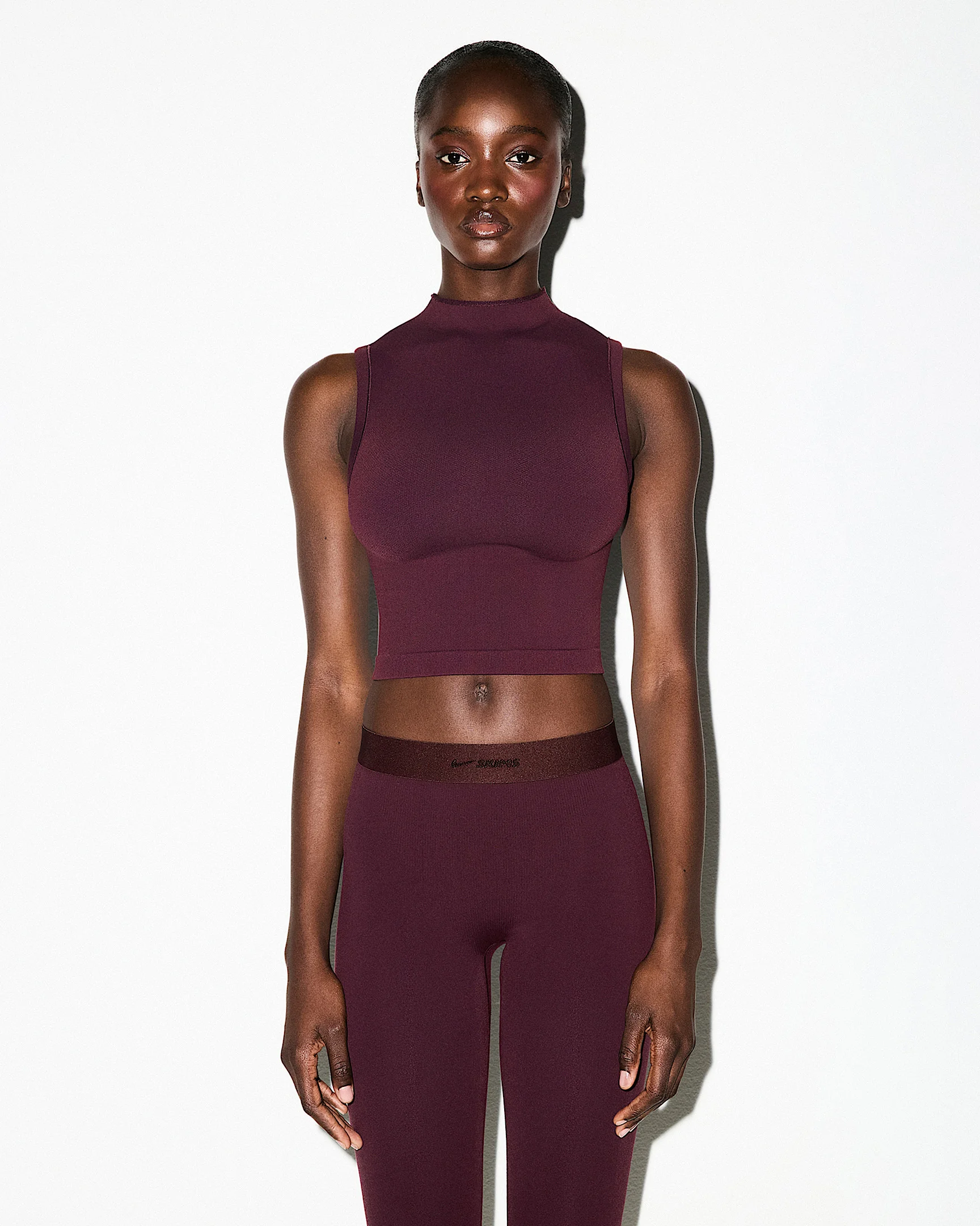 Our moisture-wicking Vintage Seamless fabric makes this bra look and feel perfectly worn in. It pairs a soft, breathable waffle knit with a vintage wash and offers extra support thanks its long-line design. Benefits - A waffle knit and vintage wash give our breathable Vintage Seamless fabric a ribbed texture. - Mock-neck and long-line design give you added coverage. Product Details - Pullover style - Knit logo at center front - 89% polyamide/11% spandex - Machine wash - Imported - Shown: NSKM CURRANT - Style: TPTNK2954-CUR SIZE & FIT Model 1 is wearing size S with a bust size of 32"81cm Model 2 is wearing size 2X with a bust size of 51"130cm Tight fit: snug and form-fitting Light support: feels ke a soft hug with plenty of freedom