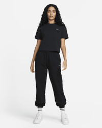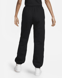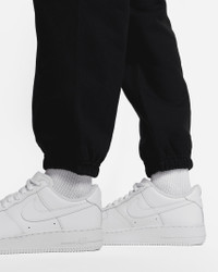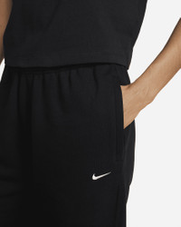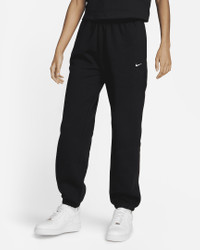 Premium fabric and a laid-back design highlight the Nike Solo Swoosh Pants. Part of the Essentials collection, these pants use a soft feel with a loose fit for all-day wear. Benefits - Brushed-back fabric delivers soft warmth. - Drop-in pockets offer easy-access storage. - An elastic waistband with a drawcord lets you adjust the fit. - Elastic cuffs help seal in warmth. Product Details - Loose fit for a roomy feel - Embroidered Swoosh - Solid: Body: 84% cotton/16% polyester. Pocket Bag: 100% cotton. - Heather: Body: 85% cotton/15% polyester. Pocket Bag: 100% cotton. - Materials may vary. Check label for actual content. - Machine wash - Imported - Shown: Black/White - Style: CW5565-010 SIZE & FIT Model is wearing size S and is 5′9″175cm Loose fit: roomy and relaxed Fl length: hits below ankle Fits large; we recommend ordering a size down