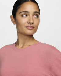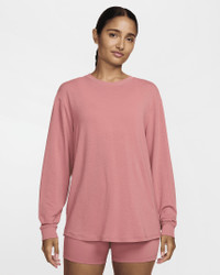 Up for a workout or down to chill, this Nike One Relaxed top is ready for whatever you are. Slightly textured, incredibly lightweight jersey fabric dries quickly and drapes you in comfort that goes with any activity. A loose, roomy fit and extended length help keep you covered and cozy from your morning stroll to your evening wind-down—and at all the stops in between. More Benefits - Nike Dri-FIT technology moves sweat away from your skin for quicker evaporation, helping you stay dry and comfortable. - Curved hem helps keep you covered as you move. Product Details - 81% polyester/13% cotton/6% spandex - Machine wash - Imported - Reflective logo at center back - Not intended for use as Personal Protective Equipment (PPE) - Shown: Canyon Pink/Black - Style: FN2817-634 SIZE & FIT Model is wearing size S and is 5′9″175cm Loose fit: roomy and relaxed